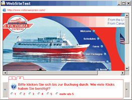 Sie wählen die Webseiten aus, die Sie durch Probanden testen lassen wollen, mittels UserRating, oder viel effektiver, als Benchmark-UserRating. Wir führen die Probanden über die zu beurteilenden oder zum Vergleich ausgewählten Webseiten und blenden Fragen zur Beurteilung z.B. des Layouts, der Navigation oder des Inhalts ein.